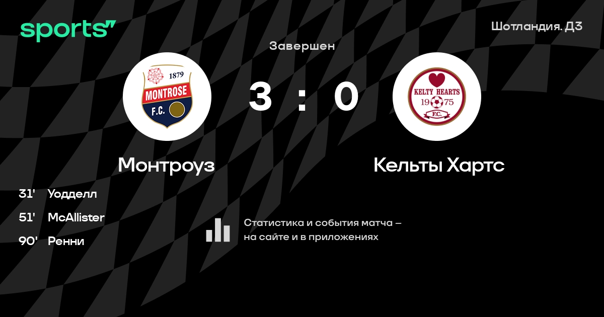 Синклэйр - Аллан, Уодделл, Диллон, Steeves - Webster, Уотли, Милн, Brown - McAllister, РайтЗапасные: Леннокс, Alexander, Гардин, Giacomini, Grant, Campbell, Джонстон, Ренни