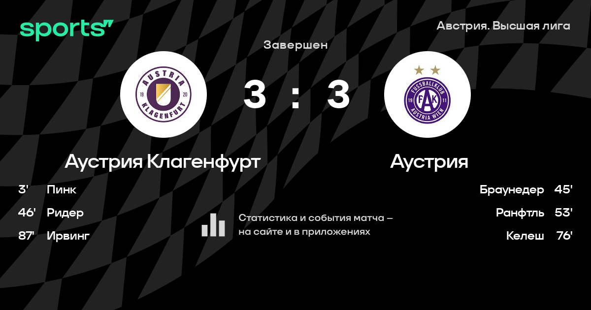 Аустрия Клагенфурт – Аустрия: Аустрия не проигрывает в 5 последних матчах против этого соперника