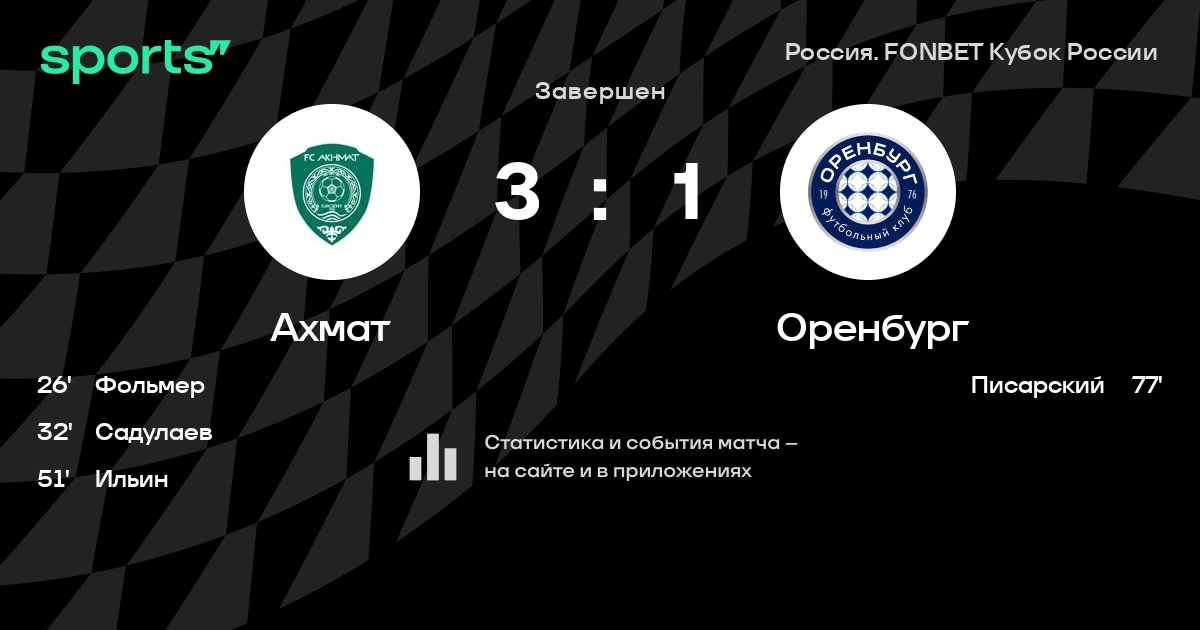 Ахмат – Оренбург: Оренбург забивает в 7 последних матчах против этого соперника