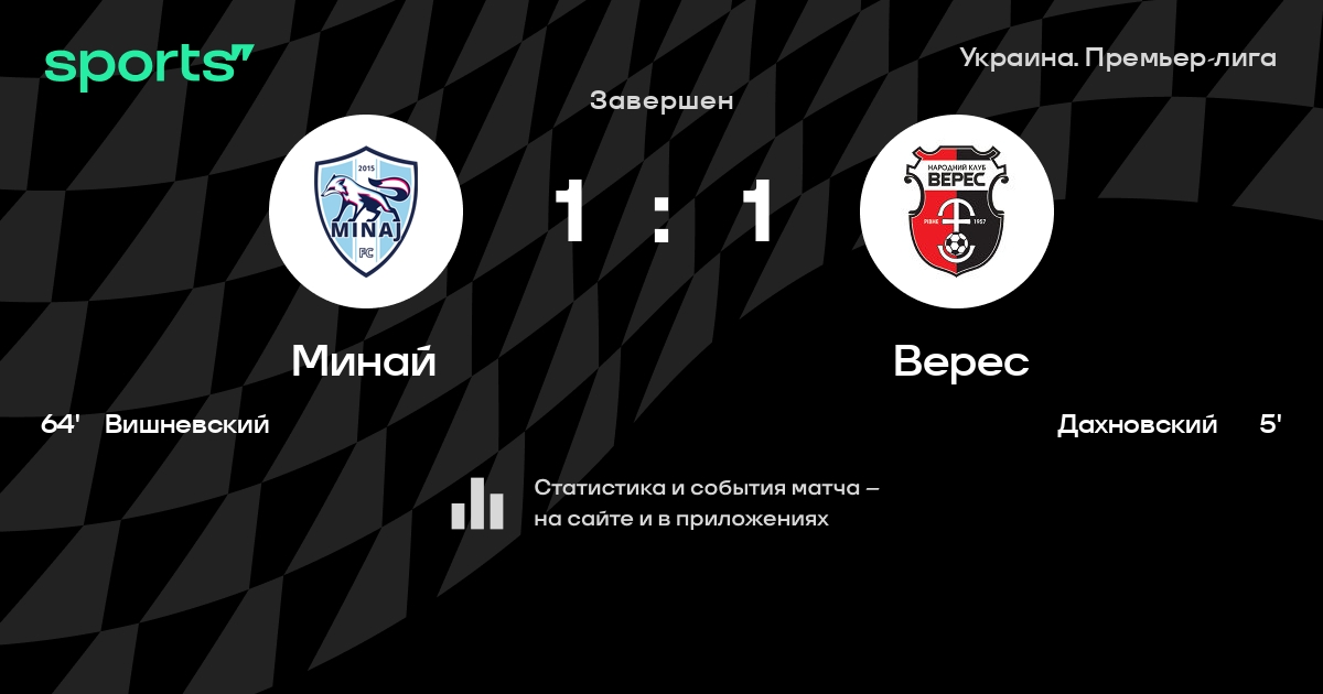 Минай – Верес: Минай побеждает в 3 последних очных матчах дома