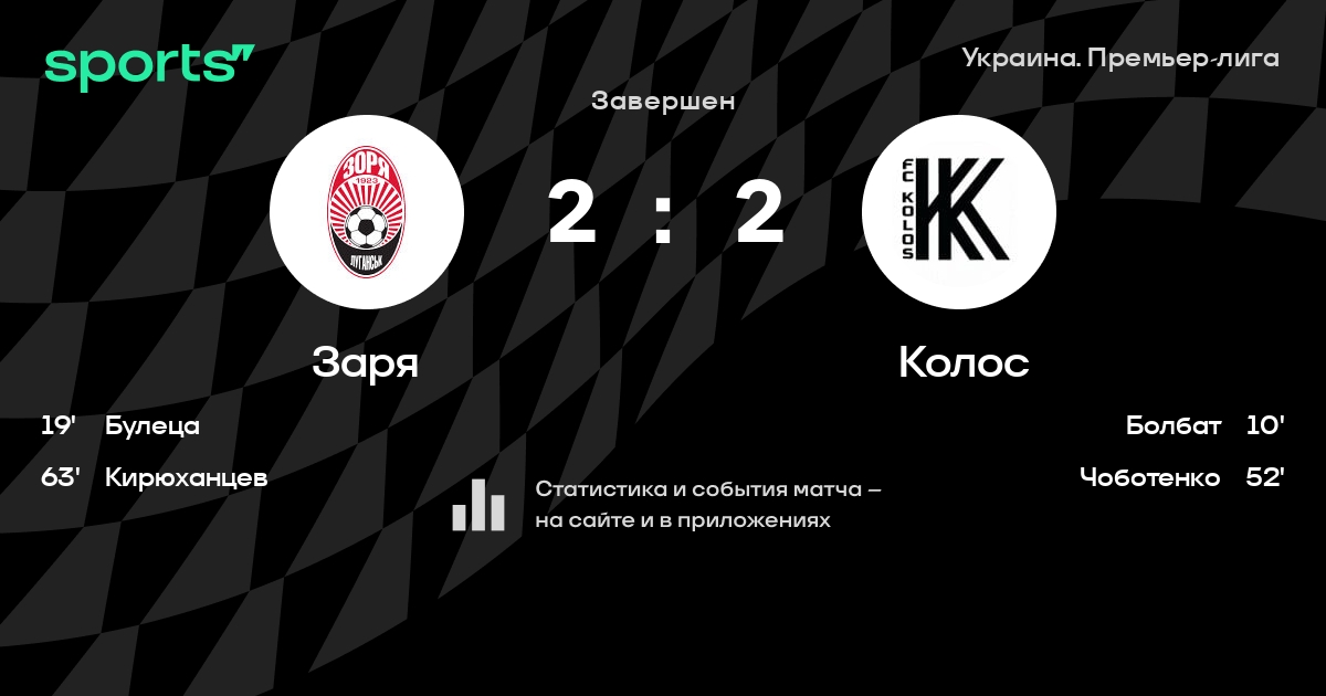 Заря – Колос: Заря забивает в 7 из 8 последних матчей против этого соперника