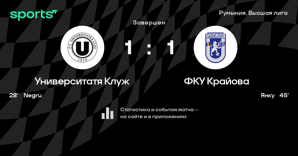 Universitatea Cluj не выигрывает в 8 последних матчах
