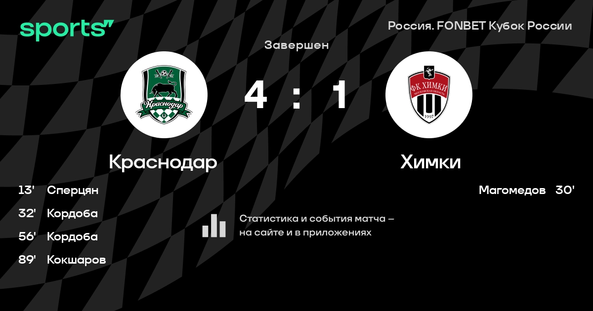Краснодар – Химки: Химки забивает в 6 из 8 последних матчей против этого соперника