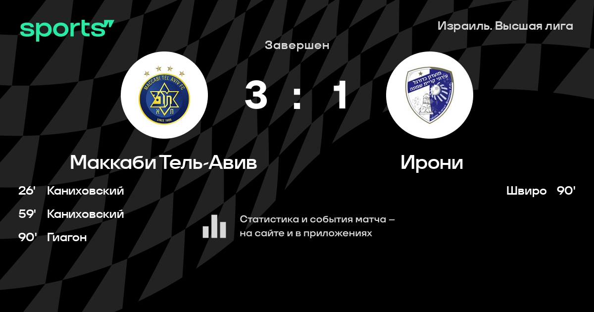 Маккаби Тель-Авив – Ирони: Маккаби Тель-Авив забивает в 4 последних матчах против этого соперника
