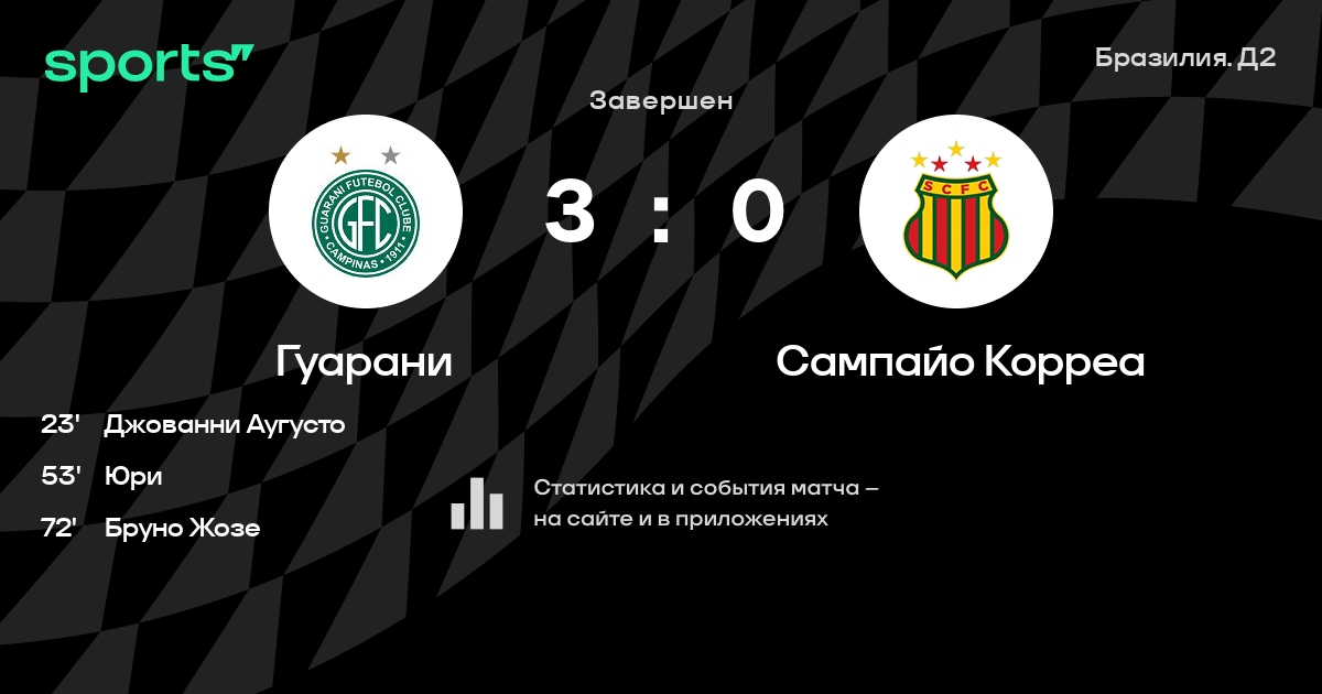 Гуарани – Сампайо Корреа: Гуарани забивает в 6 из 7 последних матчей против этого соперника