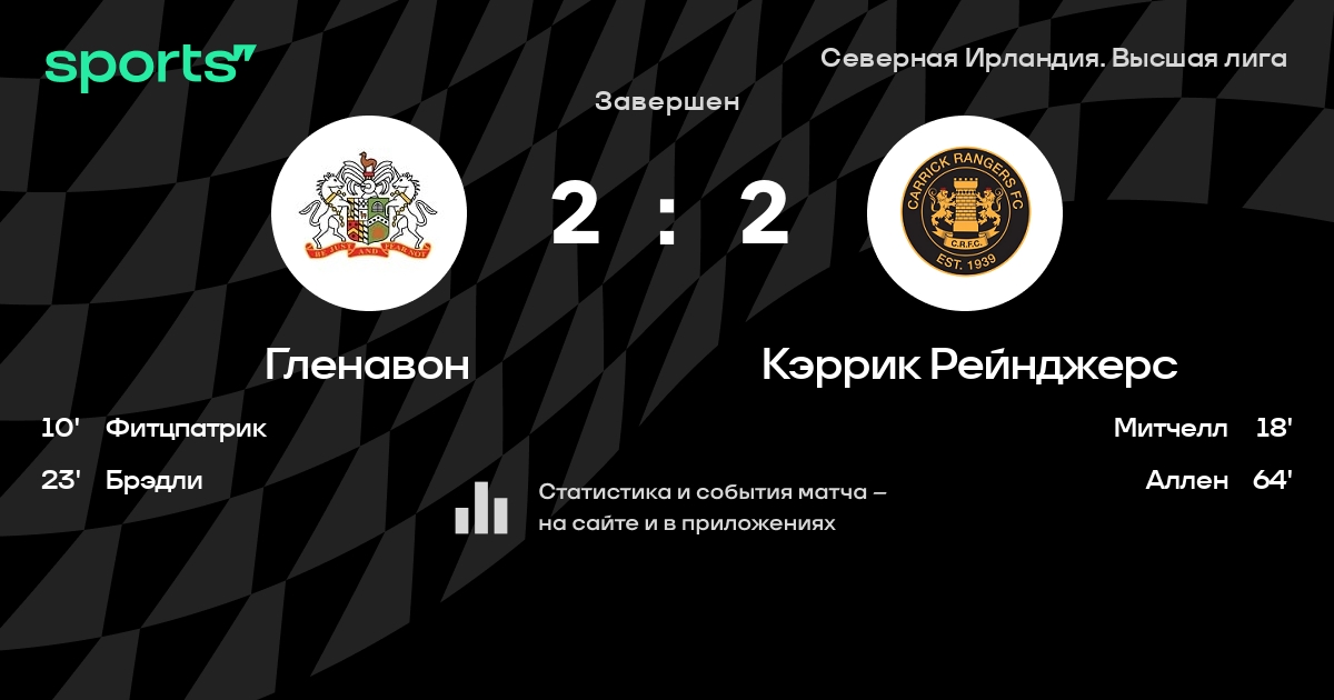 Гленавон – Кэррик Рейнджерс: Гленавон забивает в 13 последних матчах против этого соперника
