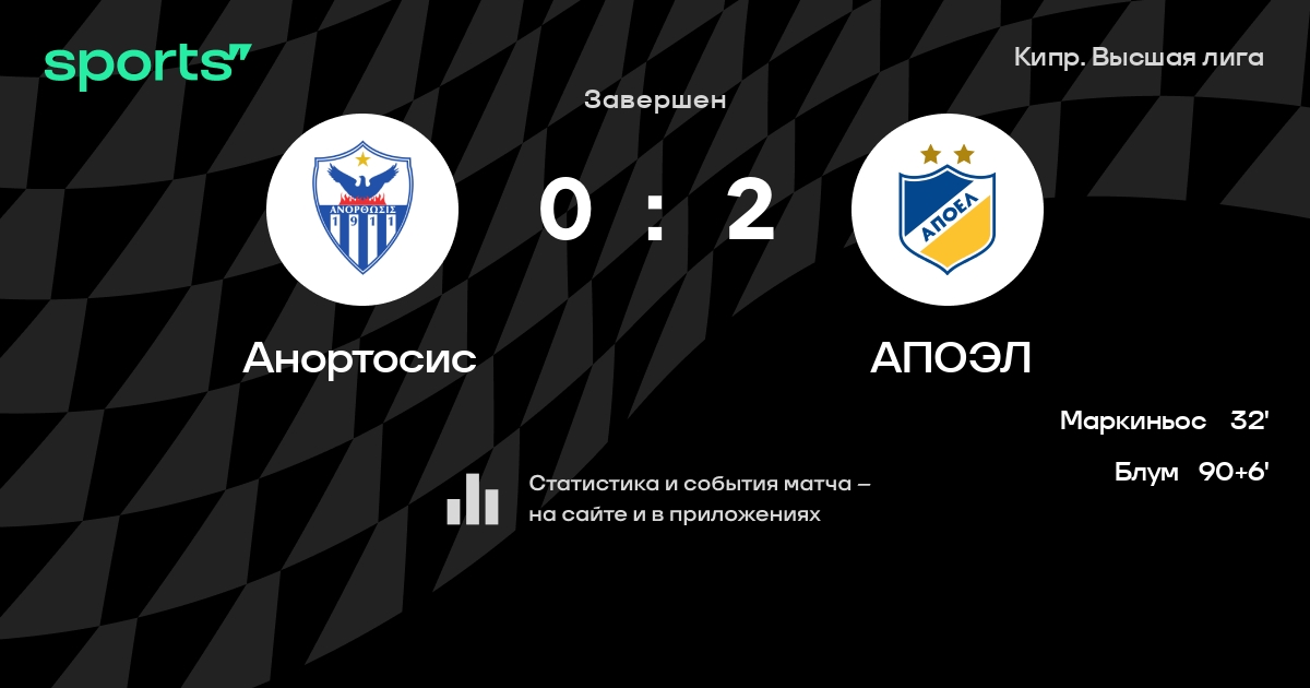 Анортосис – АПОЭЛ: Анортосис не проигрывает в 12 из 14 последних матчей против этого соперника