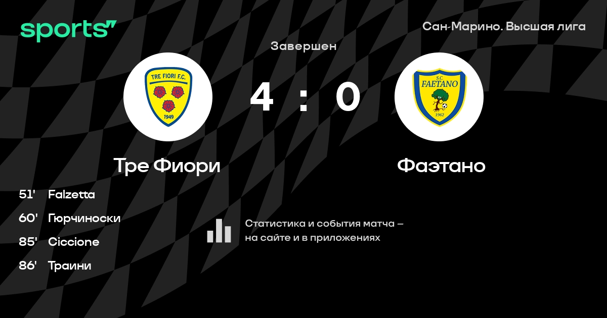 Тре Фиори – Фаэтано: Тре Фиори забивает в 13 последних матчах против этого соперника