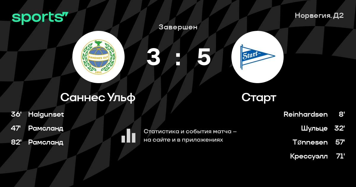 Саннес Ульф – Старт: Саннес Ульф забивает в 10 последних матчах против этого соперника