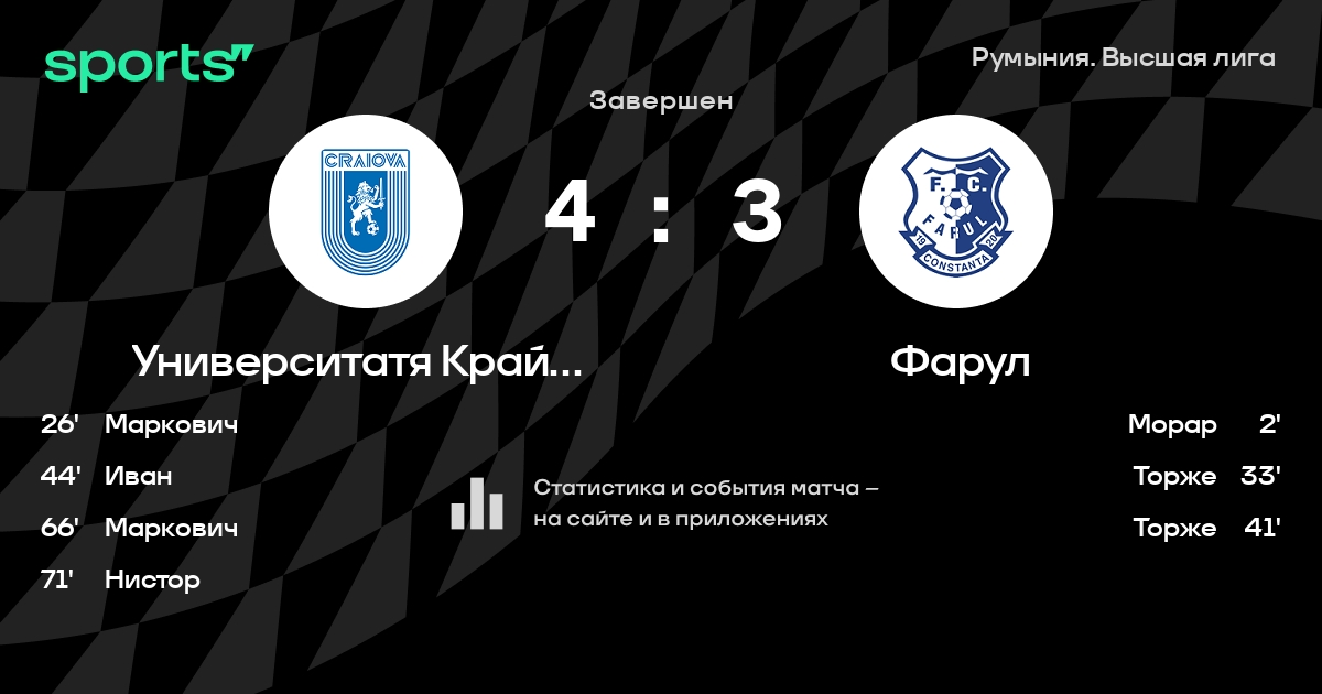 КСУ Крайова – Фарул: КСУ Крайова побеждает в 3 последних очных матчах