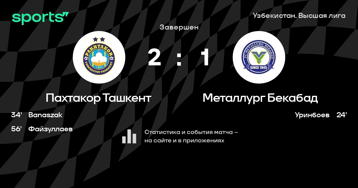 Пахтакор Ташкент – Металлург Бекабад: Пахтакор Ташкент забивает в 13 последних матчах против этого соперника