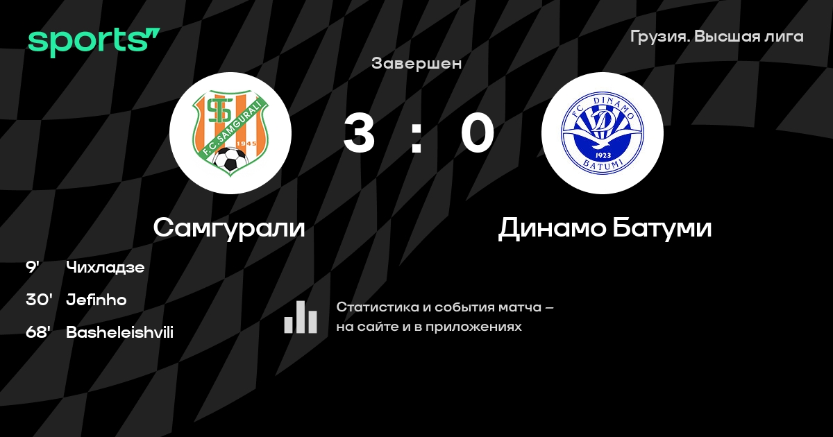 Самгурали – Динамо Батуми: Динамо Батуми не пропускает в 0 из 7 последних матчей против этого соперника