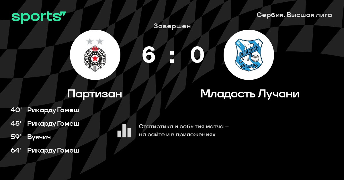 Партизан – Младость Лучани: Партизан не проигрывает в 5 из 7 последних матчей против этого соперника