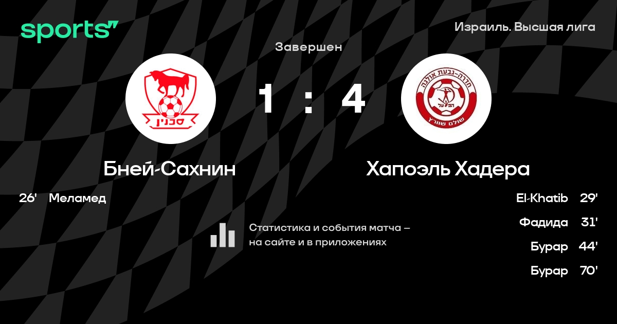 Бней-Сахнин – Хапоэль Хадера: Хапоэль Хадера не проигрывает в 6 из 7 последних матчей против этого соперника в турнире «Премьер-лига»