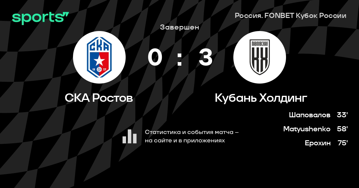 СКА Ростов – Кубань Холдинг: Кубань Холдинг забивает в 6 последних матчах против этого соперника