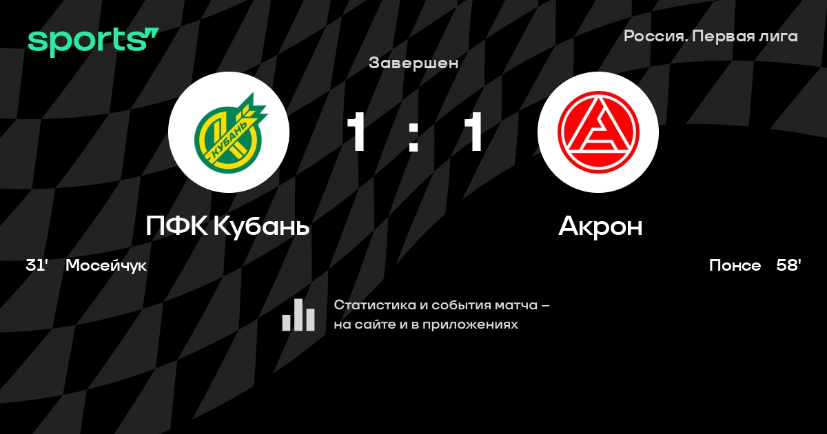 В последних 5 играх Кубань пропускает в среднем 1.00 гола за игру