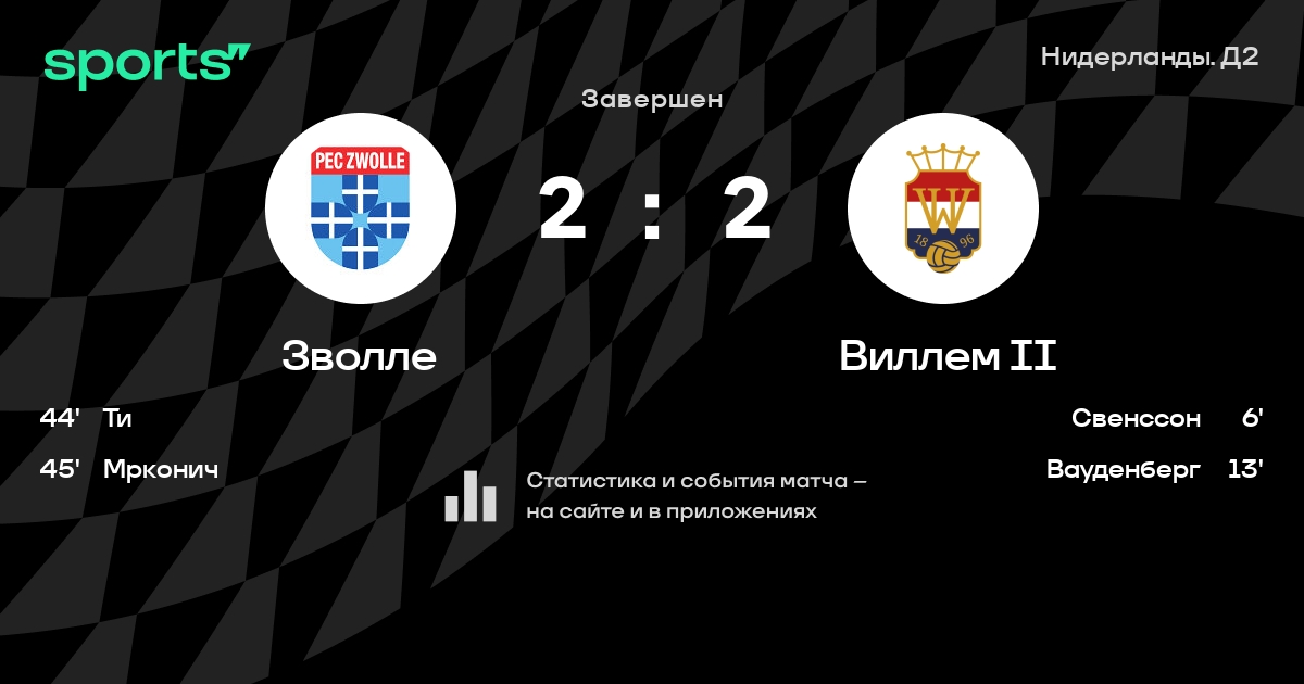 Зволле – Виллем II: Виллем II не проигрывает в 5 из 7 последних матчей против этого соперника в гостях