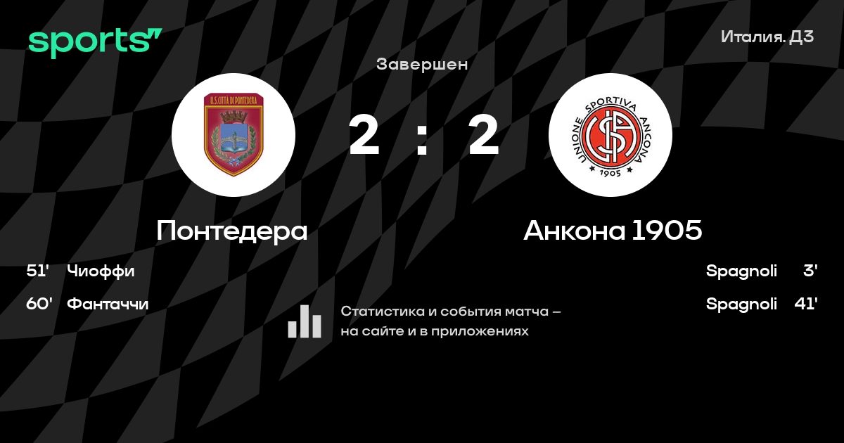 Понтедера – Анкона 1905: Анкона 1905 не проигрывает в 5 из 6 последних матчей против этого соперника