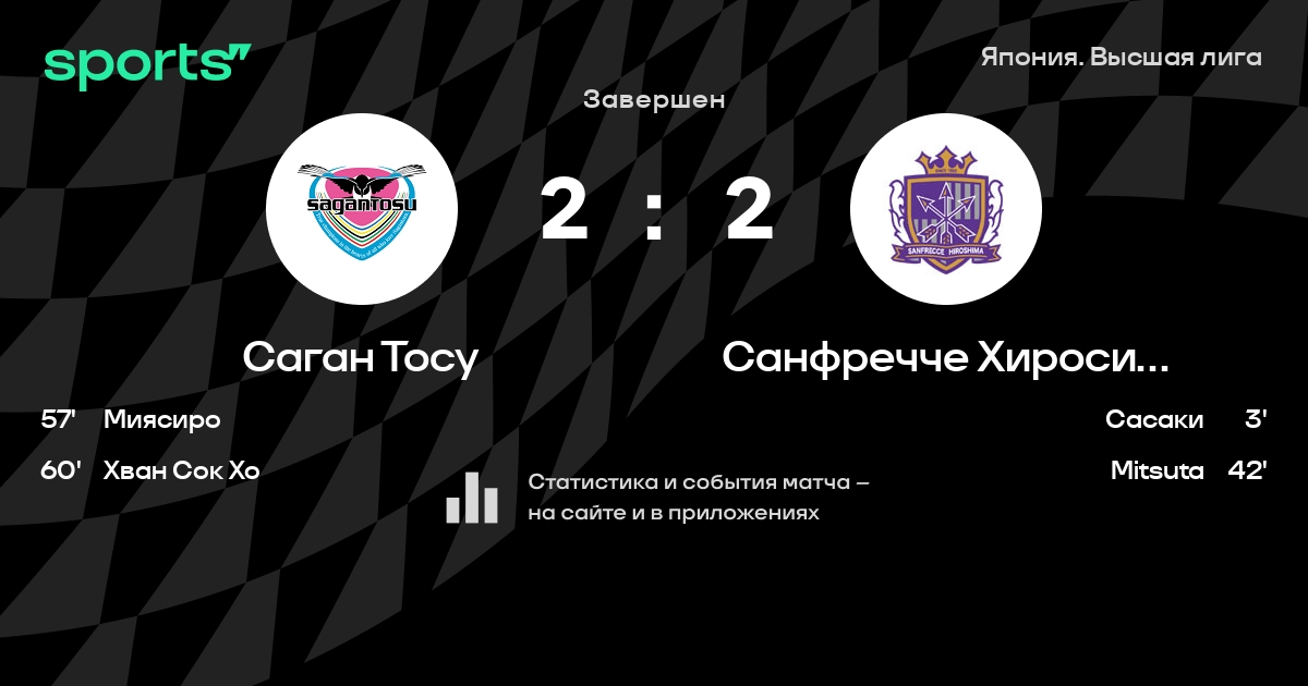 Саган Тосу – Санфречче Хиросима: Санфречче Хиросима не проигрывает в 6 последних матчах против этого соперника