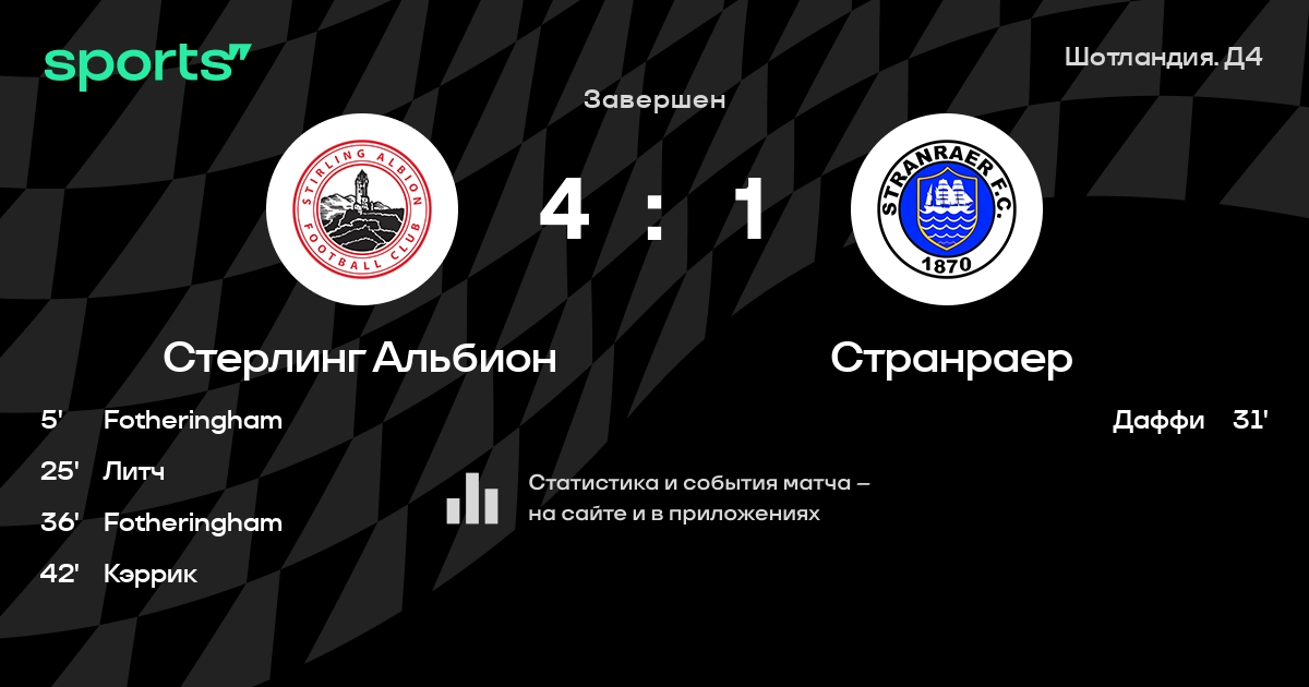 Стерлинг Альбион – Странраер: Стерлинг Альбион забивает в 5 последних матчах против этого соперника