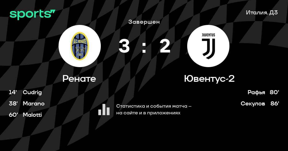 Ренате – Ювентус-2: Ренате забивает в 6 из 7 последних матчей против этого соперника