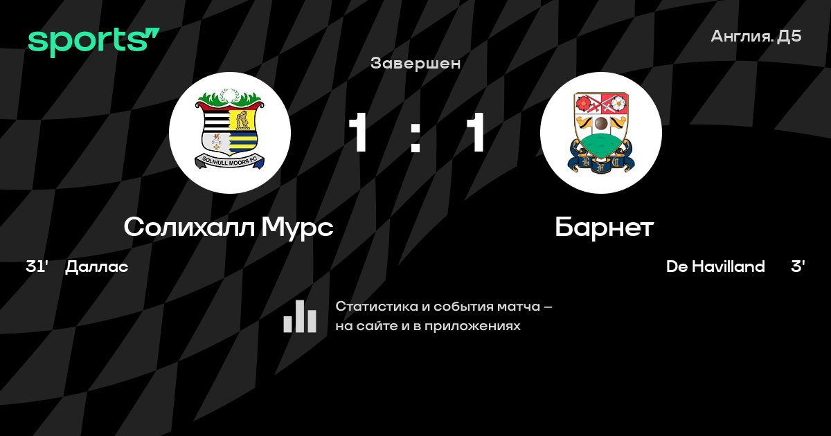 Солихалл Мурс – Барнет: Солихалл Мурс забивает в 5 последних матчах против этого соперника