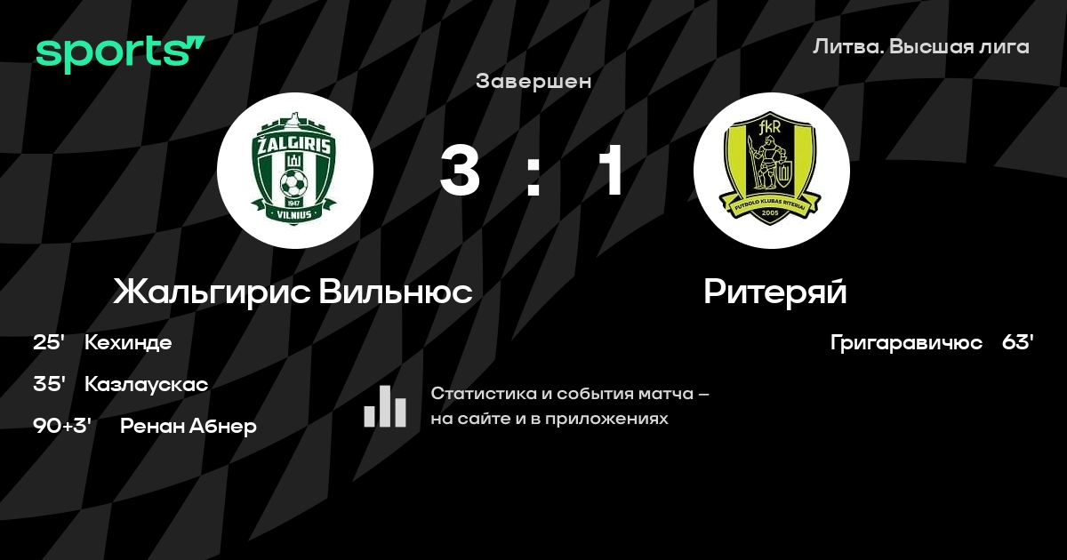 Трансляция Жальгирис Вильнюс - Ритеряй
