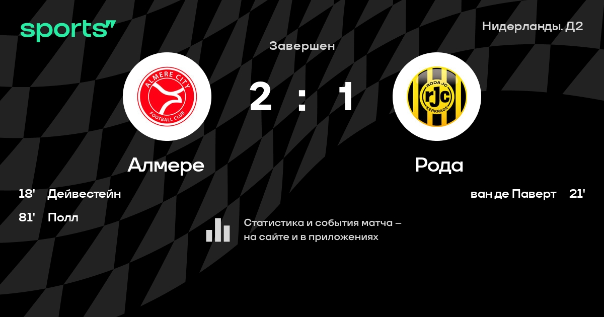 Алмере – Рода: Алмере не проигрывает в 6 из 8 последних матчей против этого соперника