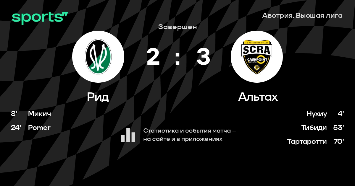 Рид – Альтах: Альтах не проигрывает в 7 из 9 последних матчей против этого соперника