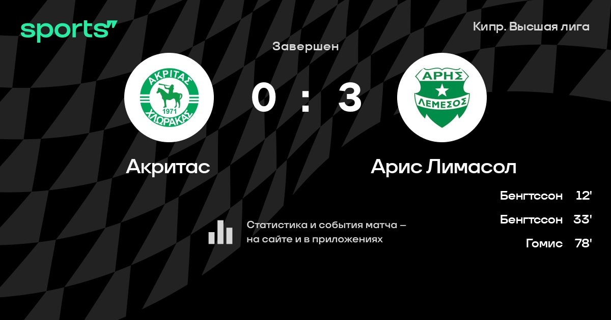 Akritas Chlorakas – Арис Лимасол: Арис Лимасол забивает в 10 последних матчах против этого соперника