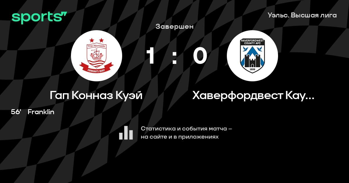Гап Конназ Куэй – Хаверфордвест Каунти: Гап Конназ Куэй не пропускает в 3 последних матчах против этого соперника