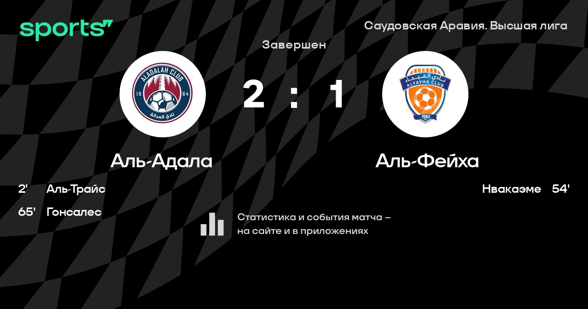 Аль-Адала – Аль-Фейха: Аль-Фейха не пропускает в 3 последних матчах против этого соперника