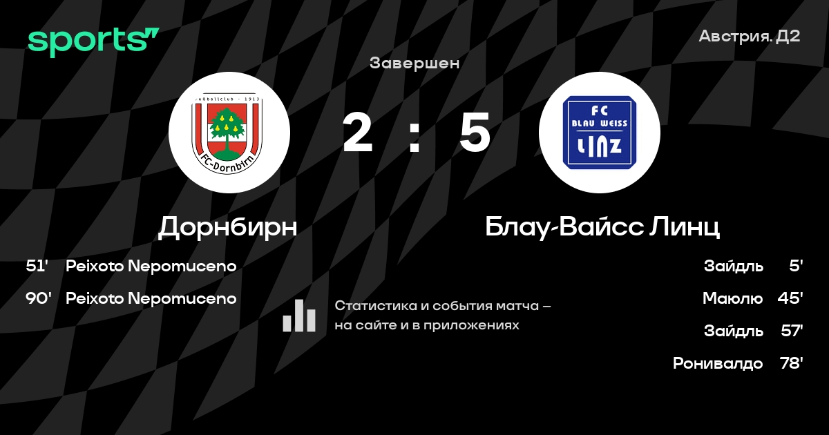 Дорнбирн – Блау-Вайсс Линц: Блау-Вайсс Линц забивает в 6 последних матчах против этого соперника
