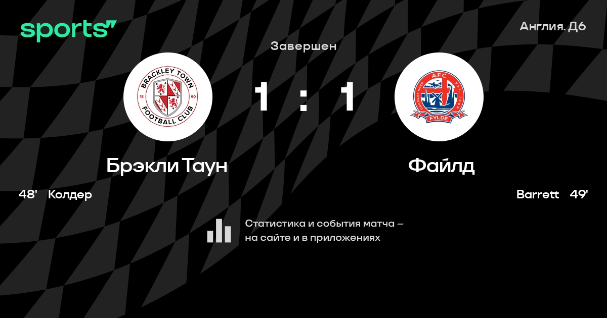 Брэкли Таун – Файлд: Файлд не проигрывает в 7 из 8 последних матчей против этого соперника в турнире «Д6. Национальная конференция»