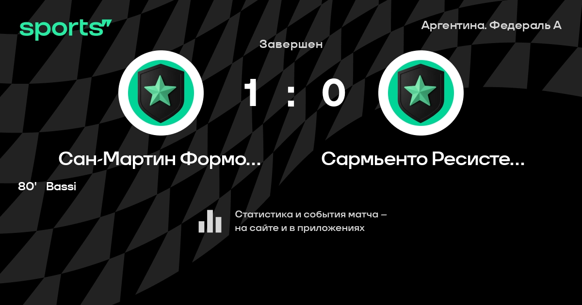 Сан-Мартин Формоса – Сармьенто Ресистенсия: Сармьенто Ресистенсия побеждает в 6 последних очных матчах