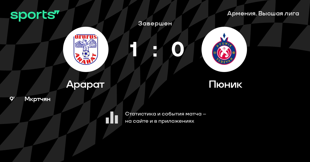 Арарат – Пюник: Пюник забивает в 6 из 8 последних матчей против этого соперника