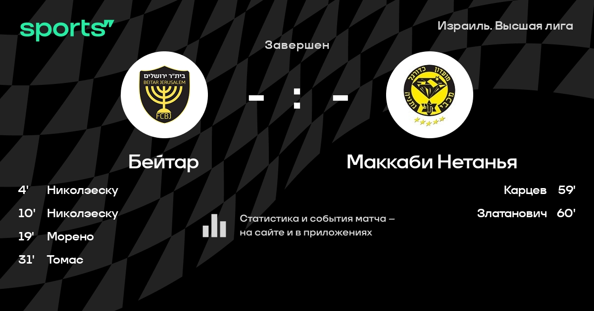 Бейтар – Маккаби Нетанья: Маккаби Нетанья забивает в 6 из 8 последних матчей против этого соперника