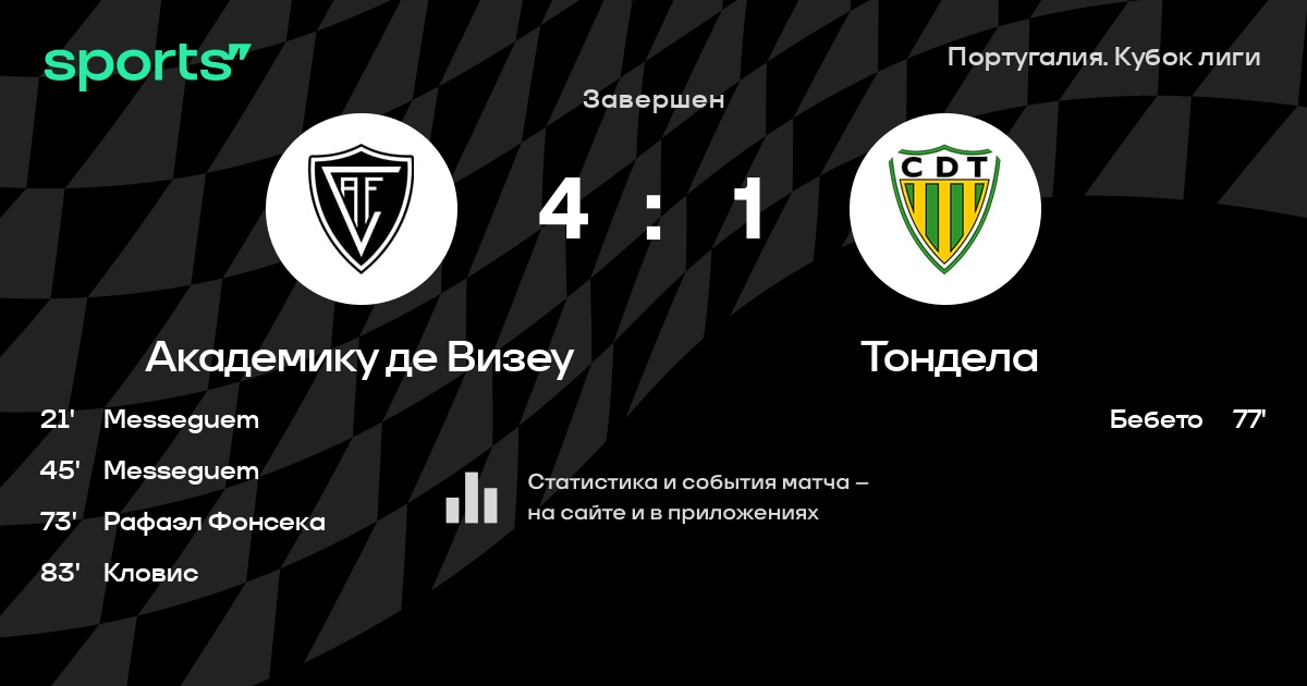 Академику де Визеу – Тондела: Академику де Визеу забивает в 5 из 7 последних матчей против этого соперника