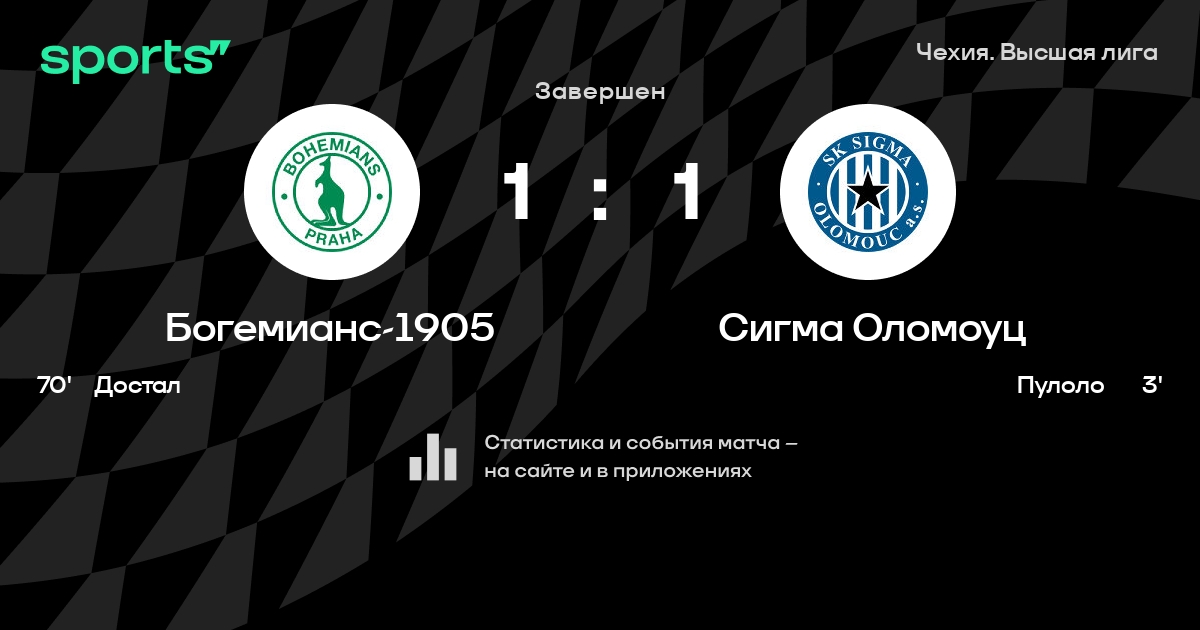 Богемианс-1905 – Сигма Оломоуц: Богемианс-1905 не проигрывает в 5 из 7 последних матчей против этого соперника в турнире «Лига 1»