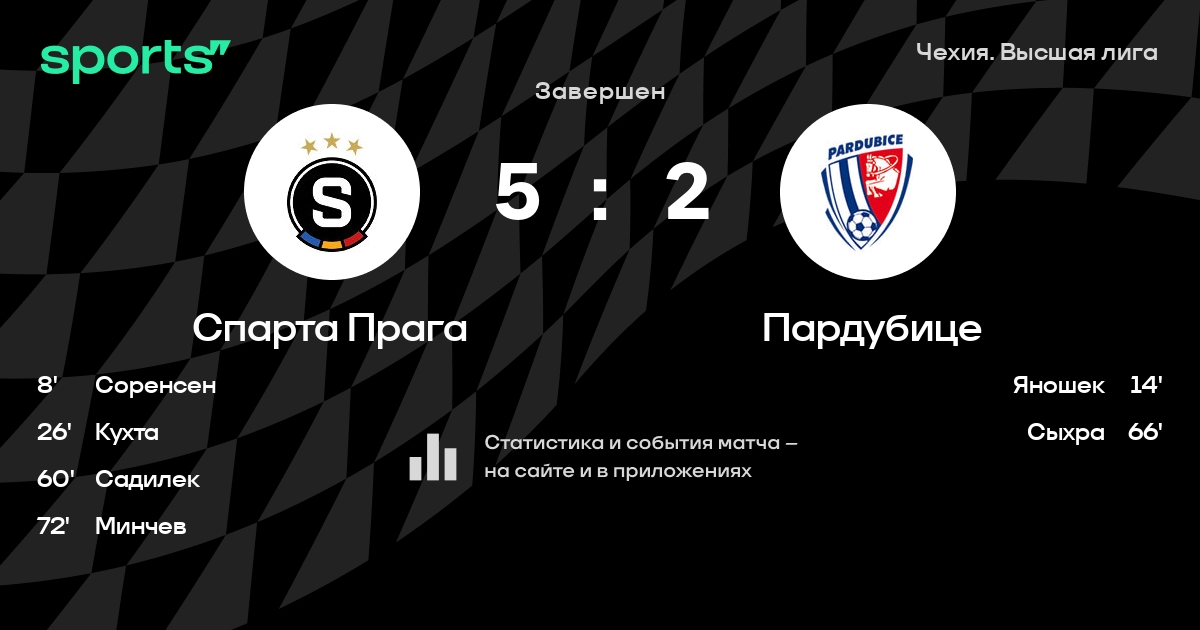 Спарта Прага – Пардубице: Спарта Прага забивает в 5 последних матчах против этого соперника