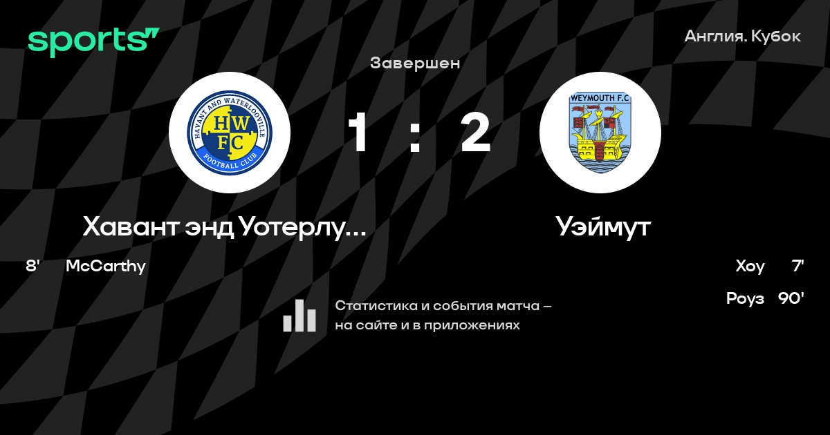 Хавант энд Уотерлувилл – Уэймут: Хавант энд Уотерлувилл забивает в 6 последних матчах против этого соперника