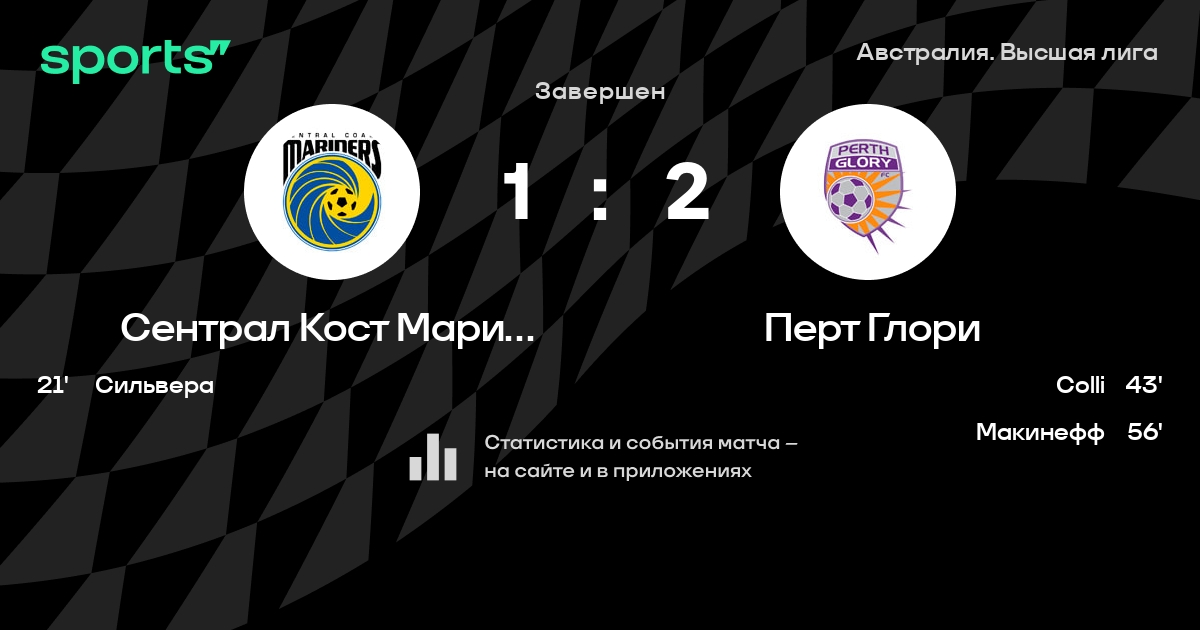 Сентрал Кост Мэринерс – Перт Глори: Перт Глори не проигрывает в 5 из 7 последних матчей против этого соперника