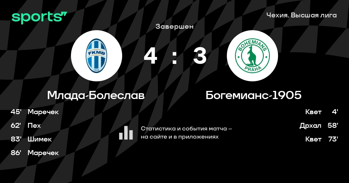 Млада-Болеслав – Богемианс-1905: Богемианс-1905 забивает в 6 последних матчах против этого соперника