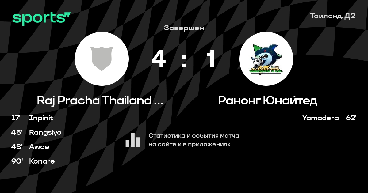 Трансляция Raj Pracha Thailand FC - Ранонг Юнайтед