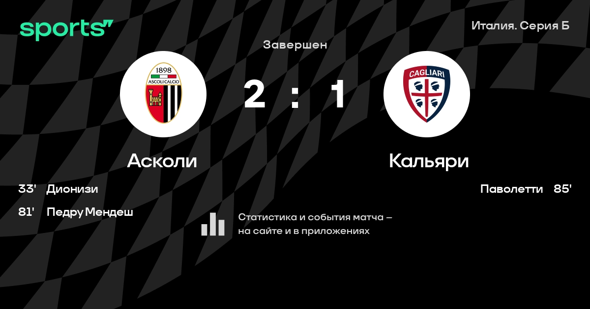 Асколи – Кальяри: Кальяри не проигрывает в 5 из 6 последних матчей против этого соперника в турнире «Серия B»
