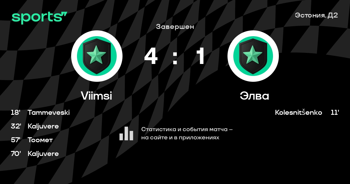 Viimsi – Элва: Элва забивает в 5 последних матчах против этого соперника
