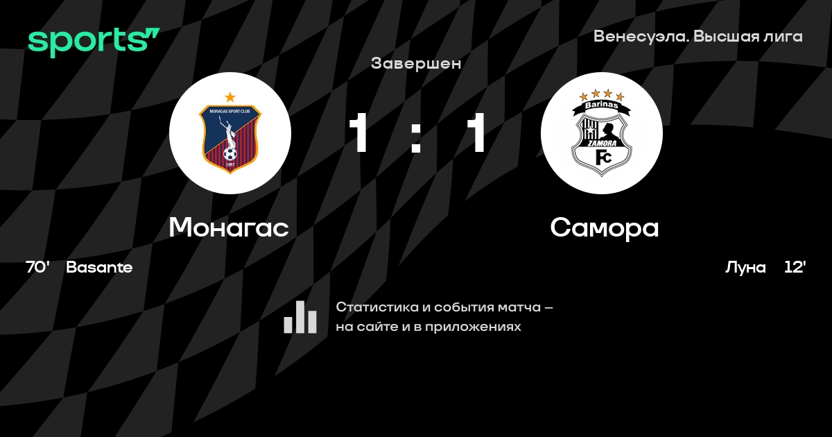 Монагас – Самора: Самора не проигрывает в 5 из 7 последних матчей против этого соперника