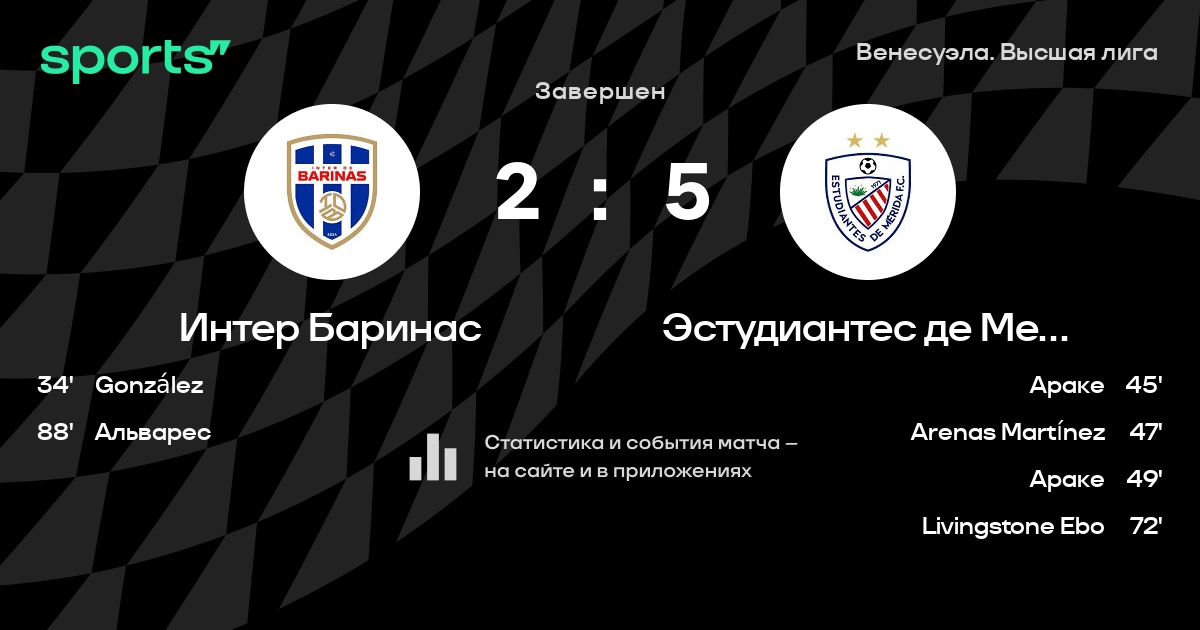 Трансляция Интер Баринас - Эстудиантес де Мерида