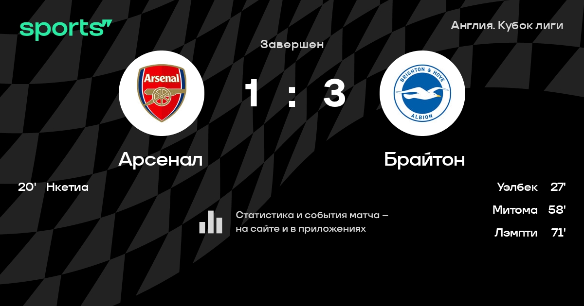 Арсенал – Брайтон: Арсенал забивает в 12 из 14 последних матчей против этого соперника