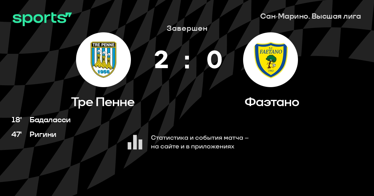 Тре Пенне – Фаэтано: Тре Пенне не проигрывает в 15 последних матчах против этого соперника